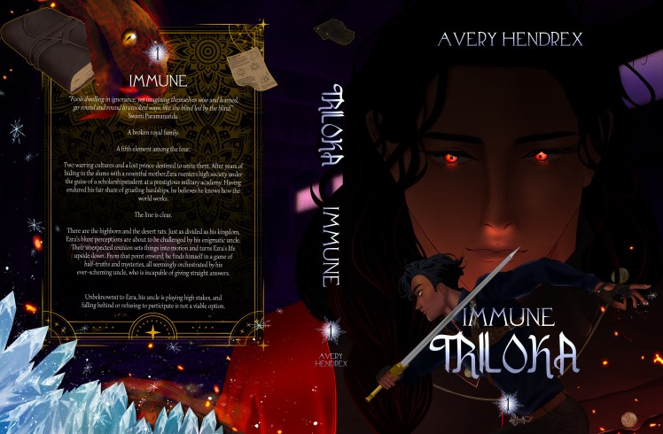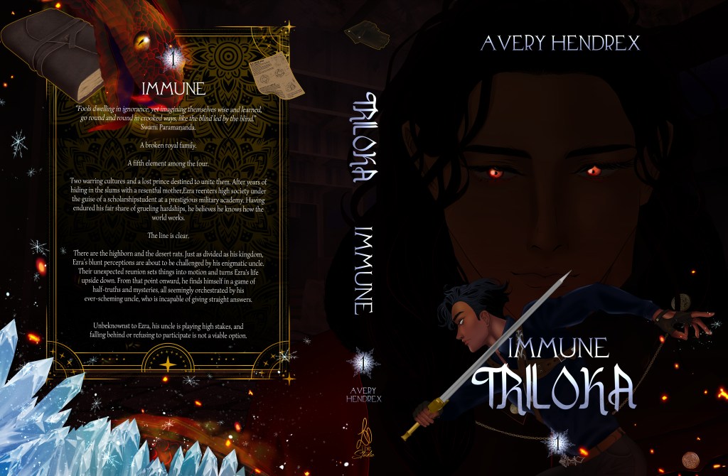 While we’re all waiting for some sign of Book 4’s release date (we’re still several months out before I can give an accurate release date), a reader has gifted us with another excellent art piece to admire in the meantime! L The Studio (Lexxie) has spoiled us with Immune’s fan art cover. There are so many fun details that call back to Book 1: the amulet, Idris’ leatherbound book, fingerless gloves, the fiery serpent, and the fire and ice. Micah Egan is an absolute wonder here, and I can’t stop admiring the leering, smoldering gaze of Agni-Josiah 😉 Thank you, Lexxie! You can visit them on their Instagram here.